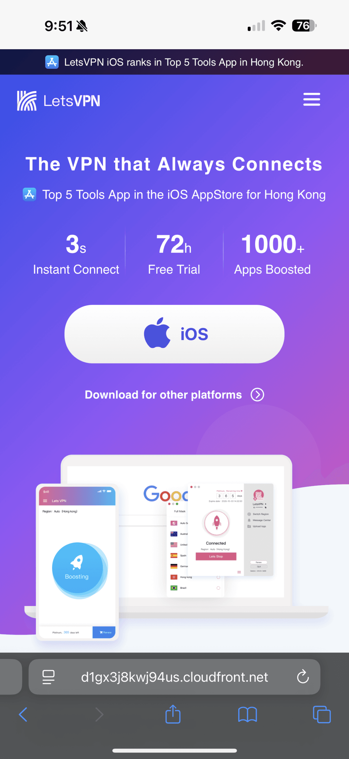 You can find LetsVPN options here, you’ll be prompted to download the app first. You’ll need the Letsapp to activate and use your VPN, so make sure to install it in advance for a smooth setup.