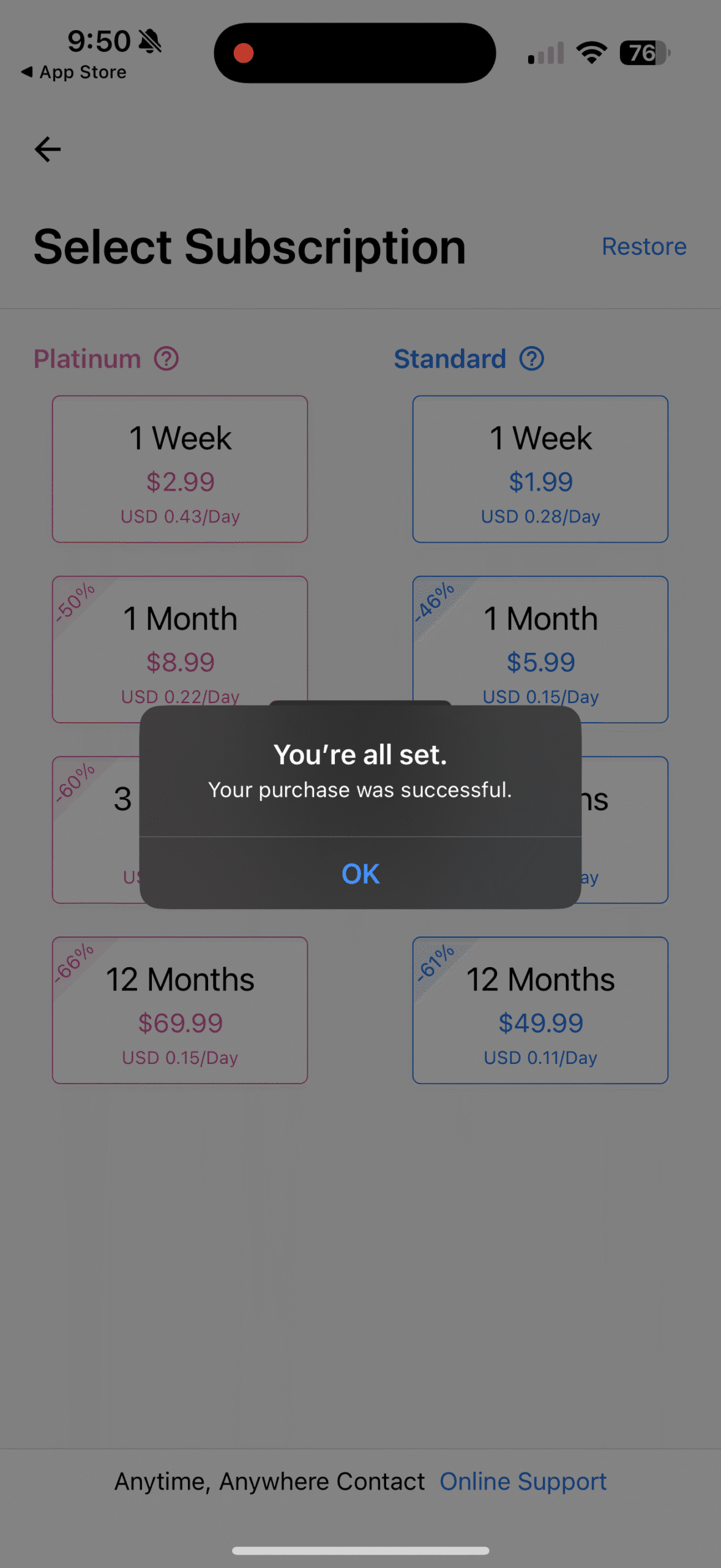 After downloading the app, you can browse all available options and start by selecting the plan that best fits your trip. Once you’ve made your selection, go ahead to complete your purchase. Notably, LetsVPN is one of the few providers that offers a one-week plan.